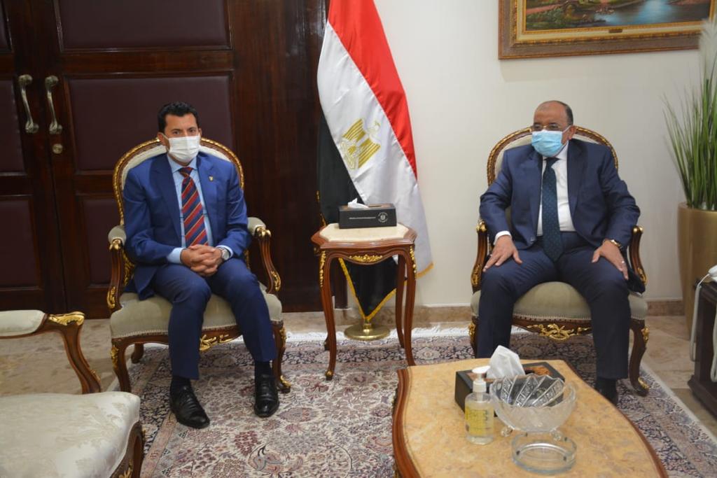 عقد اللواء محمود شعراوي وزير التنمية المحلية، اجتماعاً مع الدكتور أشرف صبحي وزير الشباب والرياضة بمقر الوزارة بالدقي بحضور عدد من القيادات بالوزارتين.