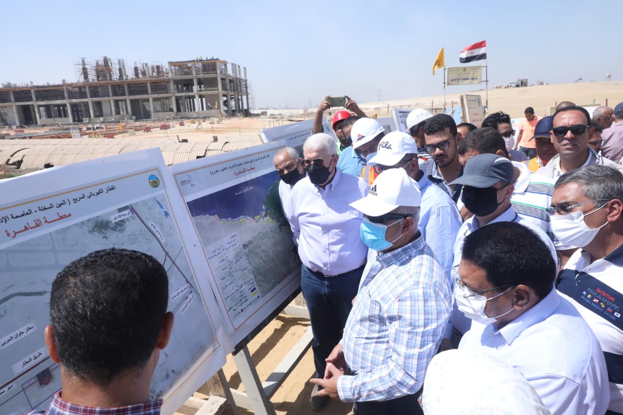 وتفقد وزير النقل أعمال تنفيذ جسر السكة والأعمال الصناعية (كباري - برابخ) في المسافة من محطة القاهرة وحتي محطة محور نجيب ثم تابع الوزير تقدم معدلات تنفيذ محطة محمد نجيب والتي تخدم مناطق القطامية والقاهرة الجديدة ومناطق العمران الجديدة الواقعة جنوب طريق العين السخنة، كما تم الاطلاع علي ما تم إنجازه في المحطة المركزية (محطة العاصمة) وهي محطة تبادلية مع القطار الكهربائي الخفيف وتعتبر مركزا لوسائل النقل المختلفة والقادمة إلي العاصمة الإدارية و تخدم بصفة أساسية العاصمة الإدارية الجديدة و المدينة الرياضية وأيضا جميع المدن الجديدة بشرق القاهرة وذلك بتبادلها مع القطار الكهربائي الخفيف LRT وتعد من أكبر المحطات في الشرق حيث تبلغ مساحتها أكثر من 1100000 متر مسطح بمناطق انتظار السيارات والمناطق التجارية .