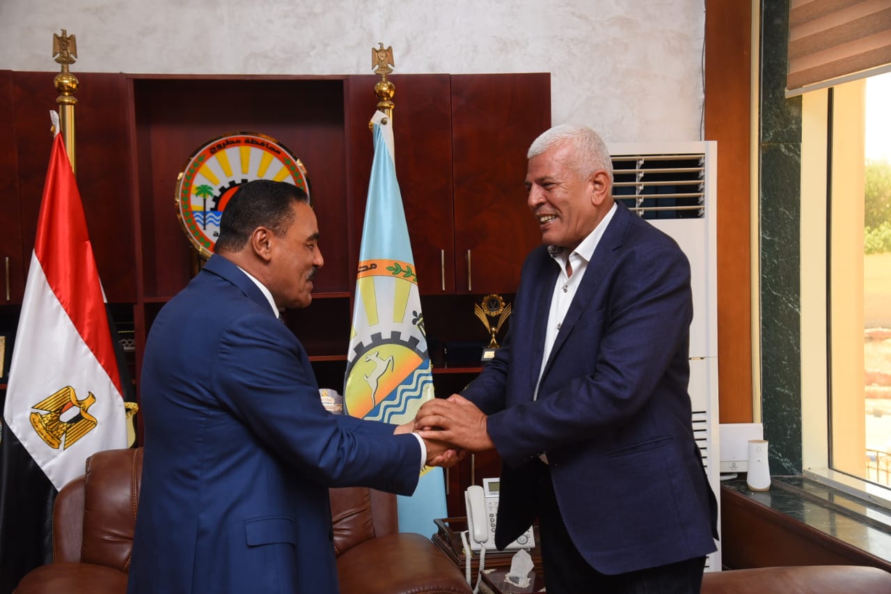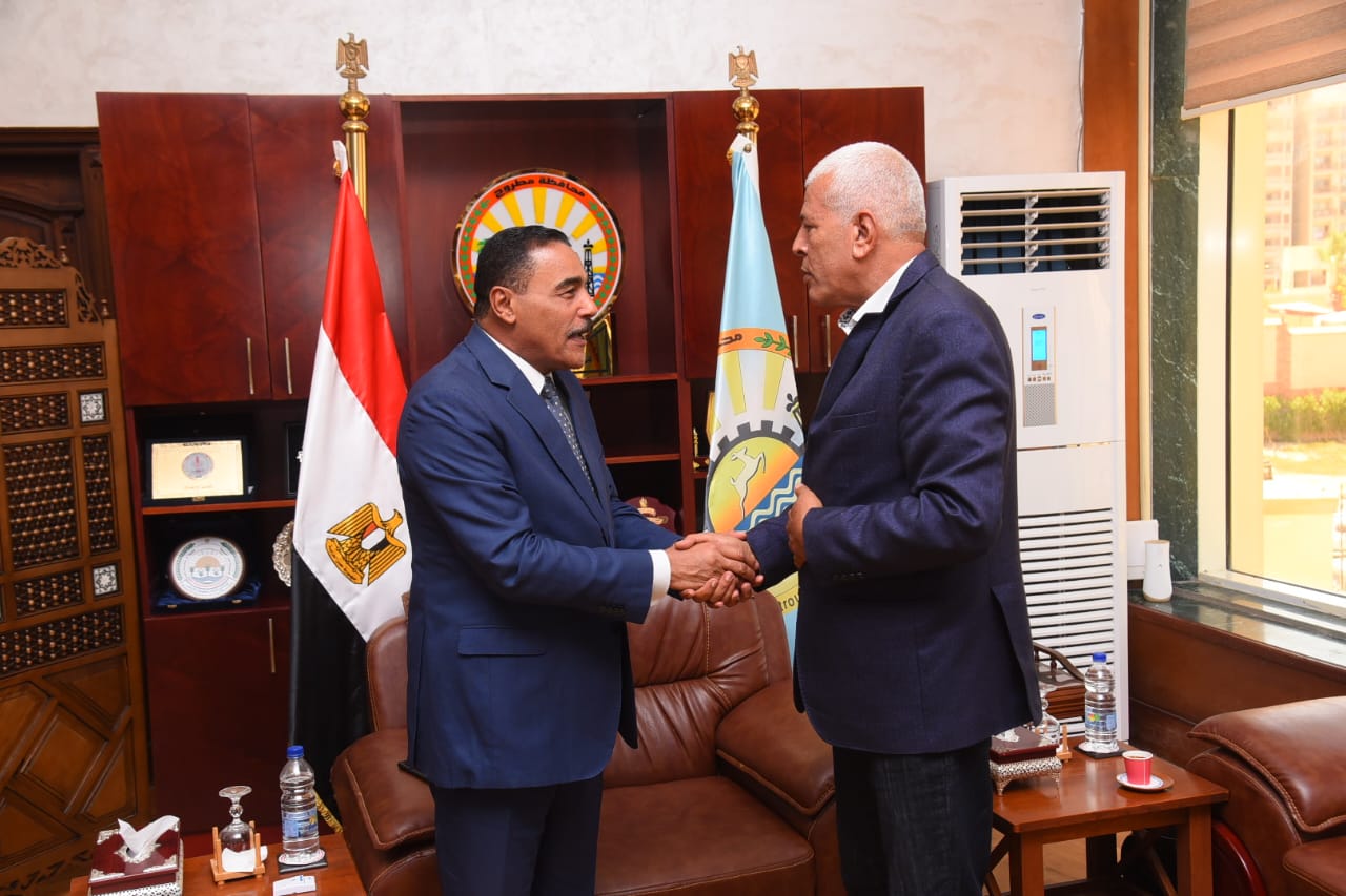 استقبل اللواء خالد شعيب محافظ مطروح الدكتور سيد خليفة النقيب العام للزارعيين.. ومدير مكتب اكساد في القاهرة