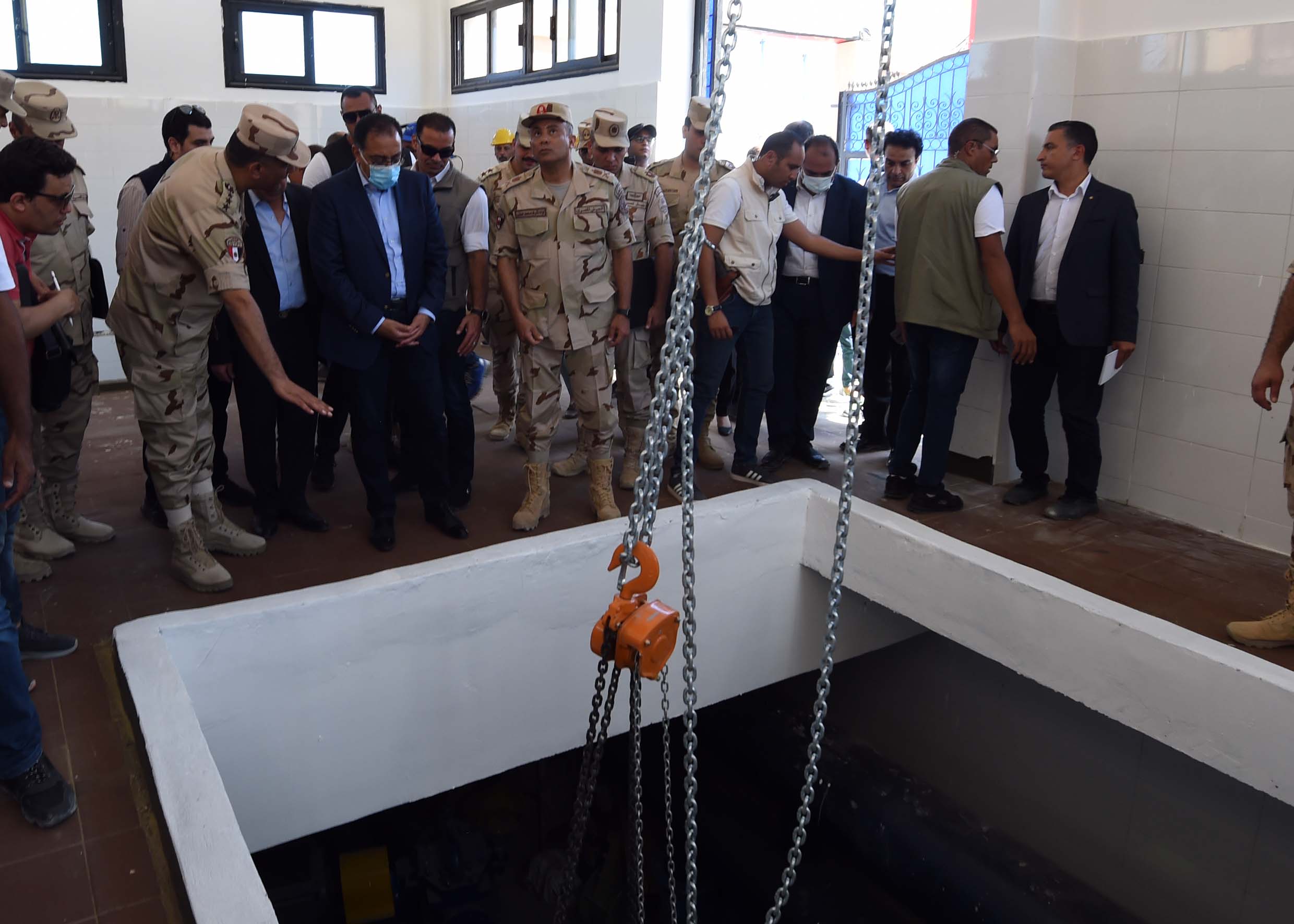 كما تفقد الدكتور مصطفى مدبولي، مشروع انشاء رافع مياه قرية أبو صير، وأشار العميد أحمد زكي، إلى أن نسبة تنفيذ المشروع تبلغ 95%، وبدء الأعمال تم في يوليو 2021، وقاربت على الانتهاء فيما يخص الشقين الإنشائي، والالكتروميكانيك، مضيفاً أن "رافع المياه" سيخدم نحو 10 آلاف نسمة، ويقام على مساحة نحو 1200 م2، وسيتم تسليم المشروع خلال هذا الأسبوع، حيث تم توريد الطلمبات الخاصة بها وتركيبها، ويتكون المشروع من خزان سعة 2000 م3 ، وعنبر طلمبات، ومبنى محول، وفيما يخص المواصفات الكهروميكانيكية، فبها ونش علوى حمولة 3 طن، وعدد2 طلمبة غاطسة، وعدد 3 طلمبة أفقية طاردة مركزية، ومحول بقدرة 400 كيلوفولت.