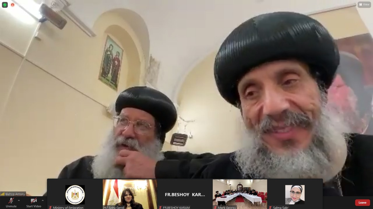 وثمنت وزيرة الهجرة تعاون الكنيسة لحل العديد من المشكلات التي تواجه المصريين في الخارج، ومنها استضافة المصريين العالقين خلال أزمة كورونا، وكذلك استضافة عدد من الطلاب خلال الحرب الروسية الأوكرانية، وآخرها التنسيق مع الأنبا بولس أسقف الكنيسة القبطية المصرية في كينيا لاستقبال الشاب المصري أحمد حسن ونقله من موزمبيق وعلاجه في المستشفى القبطي وتكليف طبيب لمرافقته وتقديم الرعاية الطبية له على متن الطائرة المصرية، وتكفلت بتوفير تذكرة طيران الطبيب المرافق.