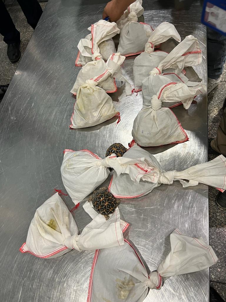 امر أسامة محمد دياب مدير الإدارة الثالثة بتحرير محضر ضبط جمركي رقم ٧٨ لسنة ٢٠٢٣ ونبه علي الراكب بالتوجه الي حديقة الحيوان لحضور إجراءات فتح الأكياس وعد وتصنيف المضبوطات، تمت الإجراءات بعد العرض علي كل من أحمد سعد عبد المطلب مدير عام جمارك الركاب مبني رقم ٢ والدكتور ماجد موسي رئيس الإدارة المركزية لجمارك مطار القاهرة الدولي.