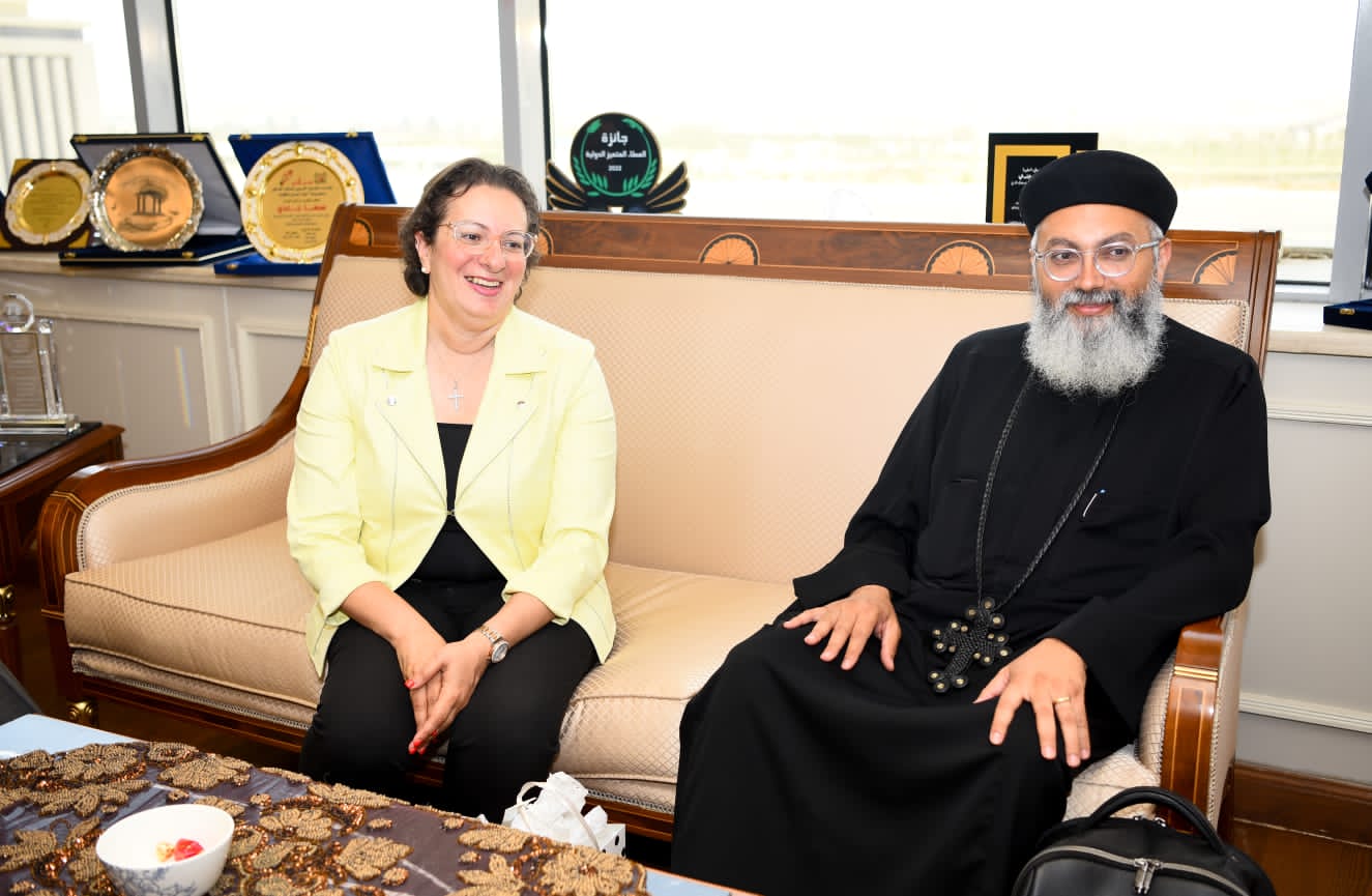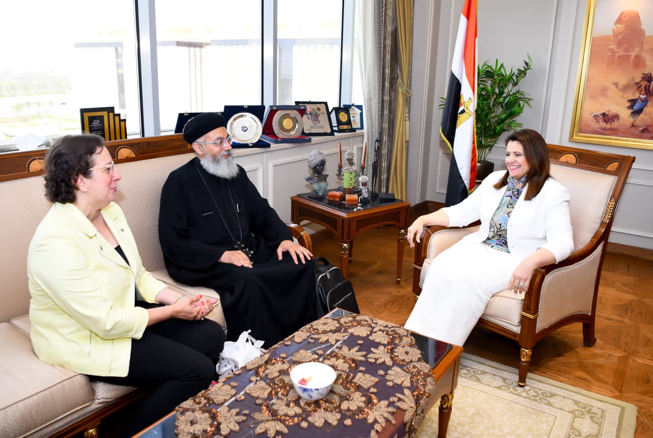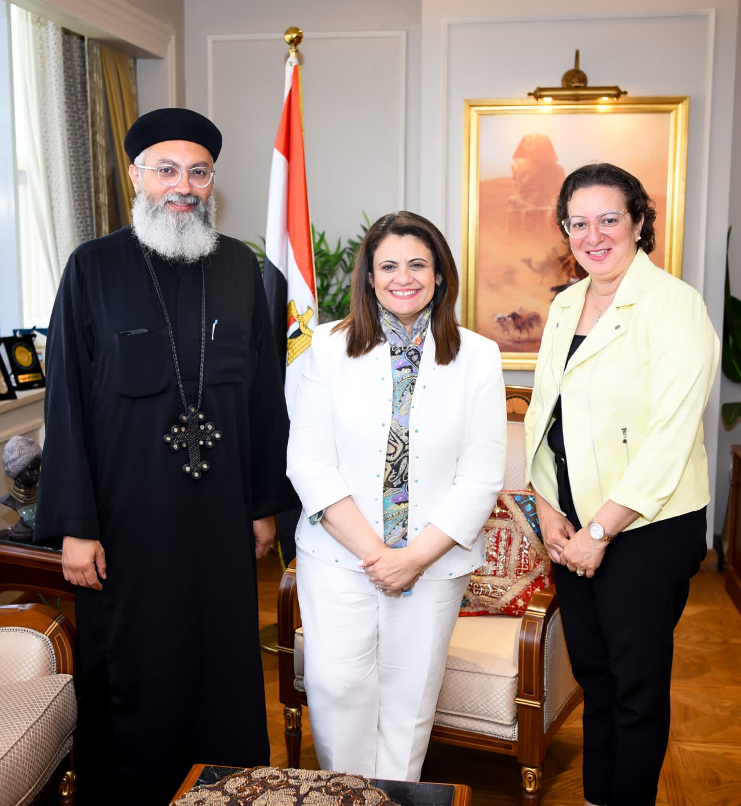 وزيرة الهجرة تلتقي ”راعي كنيسة العذراء بكندا” بعد تكريمها من رئيس الجمهورية