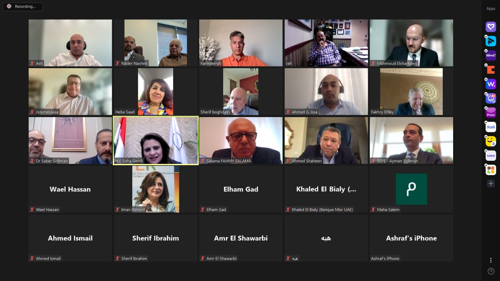 عقدت السفيرة سها جندي وزيرة الدولة للهجرة وشئون المصريين بالخارج، اجتماعا عبر "الفيديو كونفرنس "، للتعرف على برنامج الطروحات المقدم من قبل الحكومة المصرية، وكذلك خطة تخارج الدولة من عدد ضخم من المشاريع الاستثمارية الناجحة في مصر، وذلك بمشاركة السيد أيمن سليمان، المدير التنفيذي لصندوق مصر السيادي، والدكتور فخري الفقي، رئيس لجنة الخطة والموازنة بمجلس النواب، والسفير أحمد شاهين قنصل مصر في لوس أنجلوس، وبمشاركة عدد من أبرز رجال الأعمال المصريين في الخارج، ضمن سلسلة من الاجتماعات التي تعقدها وزارة الهجرة لتعريف رجال الأعمال المصريين بالخارج بكافة الفرص الاستثمارية المتاحة في دولتهم الأم.