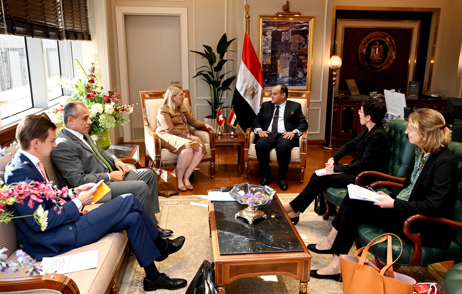 وزير التجارة والصناعة يستقبل وزيرة الدولة للشؤون الاقتصادية السويسرية بمقر الوزارة بالعاصمة الإدارية الجديدة