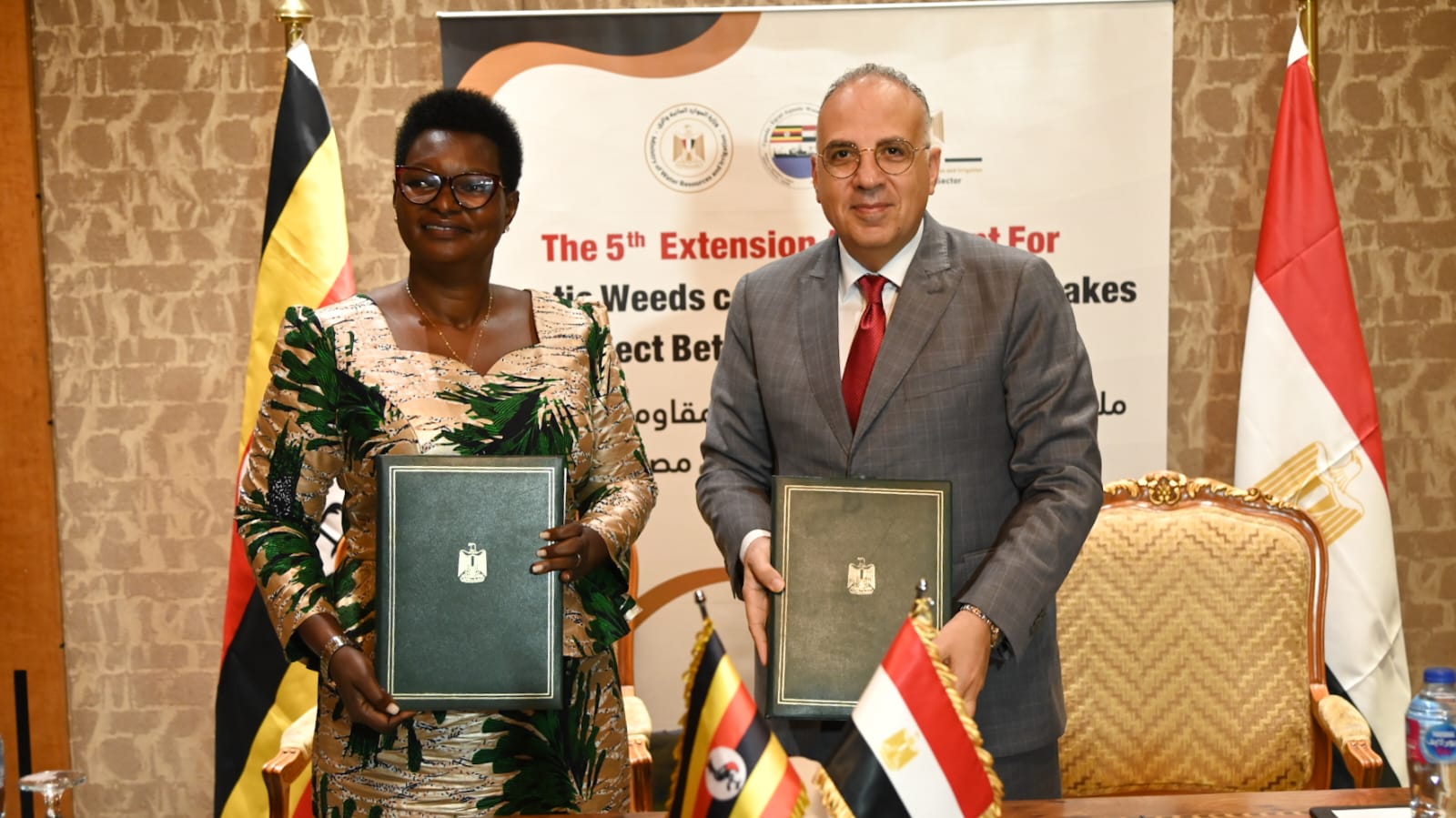 وزيرالرى و وزيرة الزراعة الأوغندية يوقعان ملحق الاتفاق الخامس لمشروع مقاومة الحشائش المائية بالبحيرات العظمى