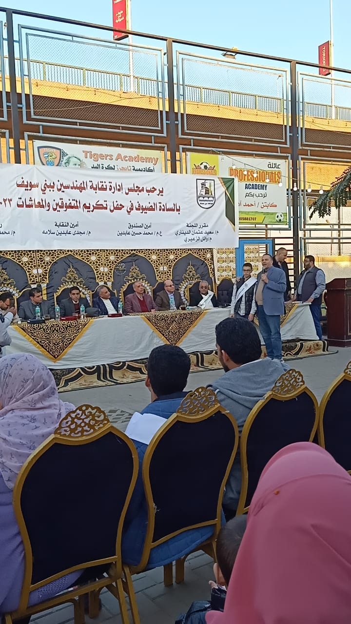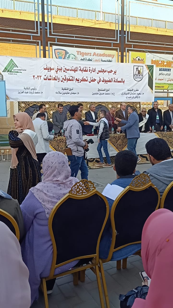 كرمت نقابة المهندسين بمحافظة ببنى سويف أوائل المتفوقين فى مراحل التعليم المختلفة فى حفل فنى كبير بحضورنقيب المهندسين وأعضاء مجلس النقابة وأولياء أمور الطلاب.