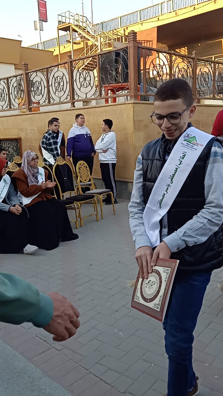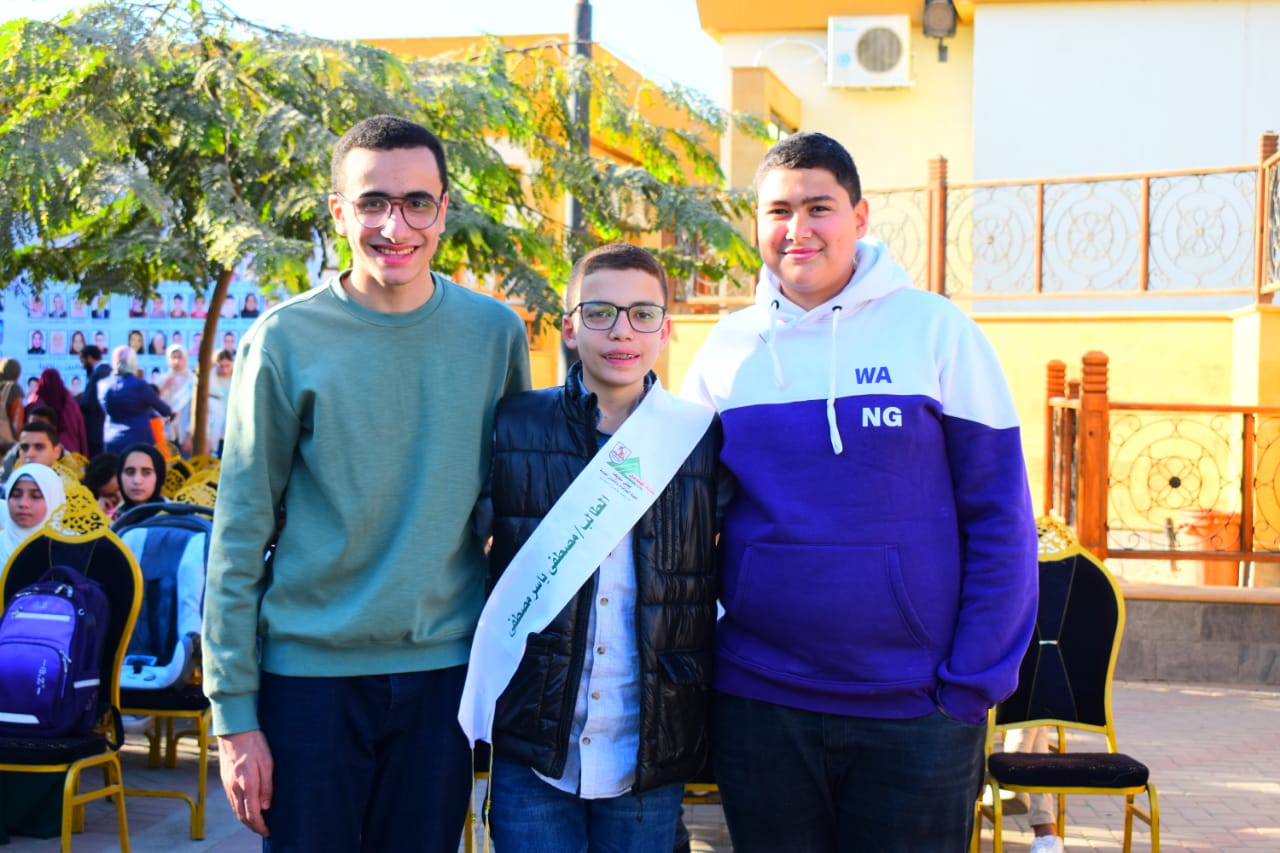 كان من بين المكرمين الطالب مصطفى ياسر مصطفى لتفوقه فى الشهادة الاعدادية على مستوى محافظة بنى سويف بمجموع 97%.