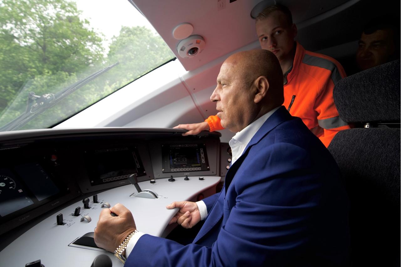 الوزير يجرى اختبار القيادة لأول قطار كهربائي سريع (فيلارو) يتم إنتاجه من قطارات شبكة القطار الكهربائي السريع المصرية والمخطط وصوله إلى مصر خلال شهر أكتوبر القادم