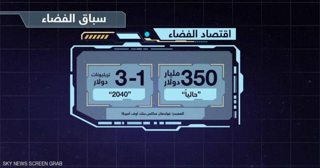 وبات الفضاء ميدان سباق محموم بين أغنى أغنياء العالم نظرا للفرص التي يوفرها، إذ يشكل حاليا اقتصادا تبلغ قيمته الحالية 350 مليار دولار، في حين يتوقع أن ينمو إلى ما بين تريليون وثلاثة تريليونات دولار بحلول عام 2040،