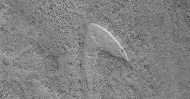 وقالت الوكالة في تغريدة عبر "تويتر" إن مركبة تابعة لها تدور في مدار الكوكب الأحمر رصدت جسما على سطح الكوكب، يشبه شعار مسلسل " ستار تريك" أو طريق النجوم الذي بدأ إنتاجه في ستينيات القرن الماضي.