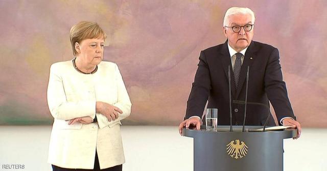 ووقع الحادث بينما كانت ميركل تقف إلى جانب الرئيس فرانك فالتر شتاينماير خلال مراسم تعيين وزيرة العدل الألماني الجديدة رسميا، وفق ما أوردت وكالة "أسوشيتد برس".