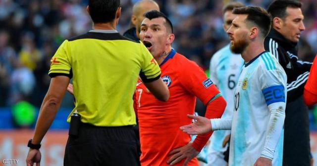 وطرد ميسي خلال مباراة المركز الثالث لمنتخب بلاده أمام تشيلي، بطريقة "غريبة"، وذلك بعد أيام من تصريحاته تجاه البطولة.
