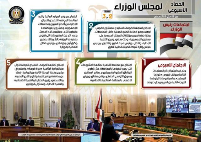 انفو جراف.. الحصاد الأسبوعى لمجلس الوزراء 7قرارات و5 اجتماعات